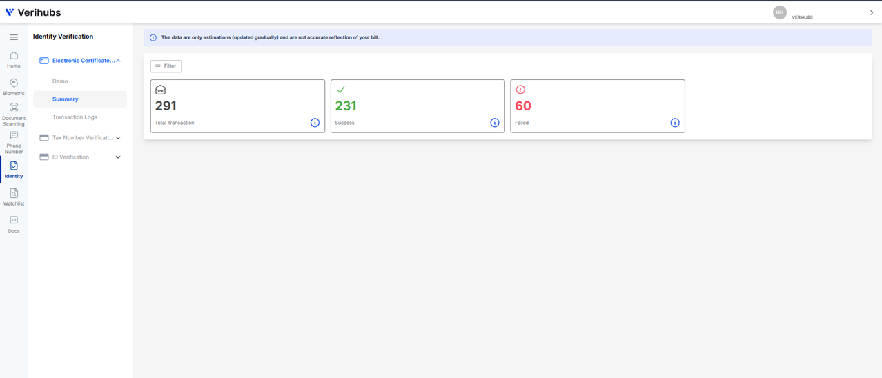 | Transaction ID | Verihubs auto-generated Electronic Certificate transaction ID. |